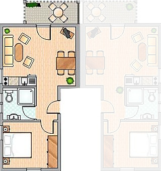 im Obergeschoß, Zugang über den Mitteleingang des Ferienhauses